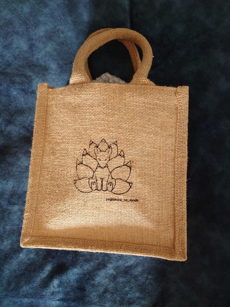 九尾をこよなく愛する管理人はロゴマーク入りのグッズ、ジュートバックを制作しました。